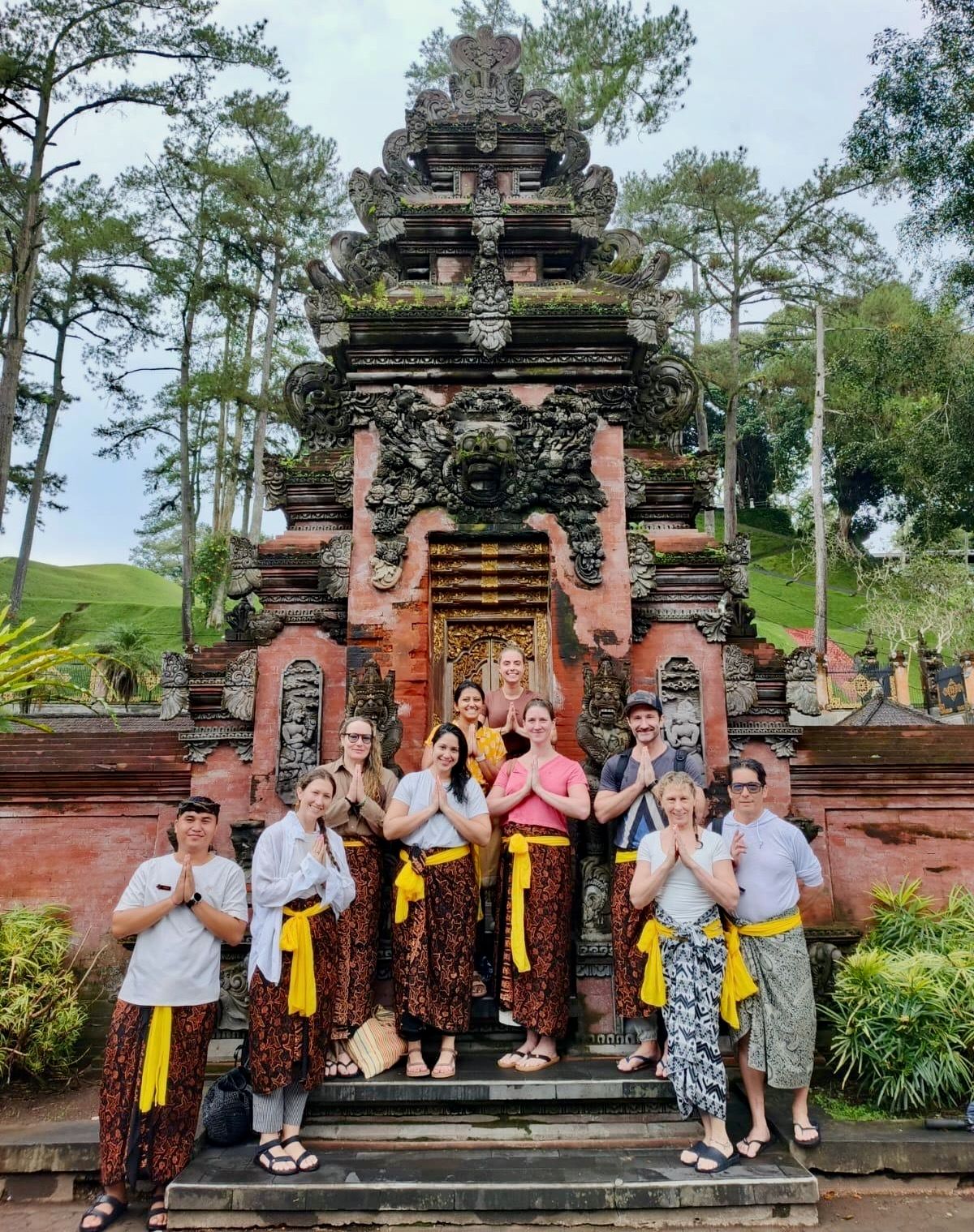 Our group at a beautiful Balinese temple, where we learned about local spiritual practices and the importance of sacred spaces.